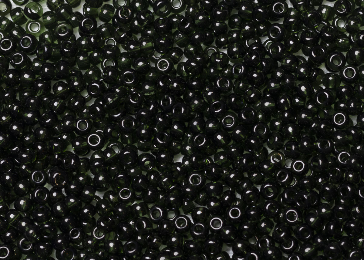 бисер чешский,фирмы "Яблонекс", размер 8\0, цвет темно-зеленый прозрачный, цена за 1 упаковку(50 гр).