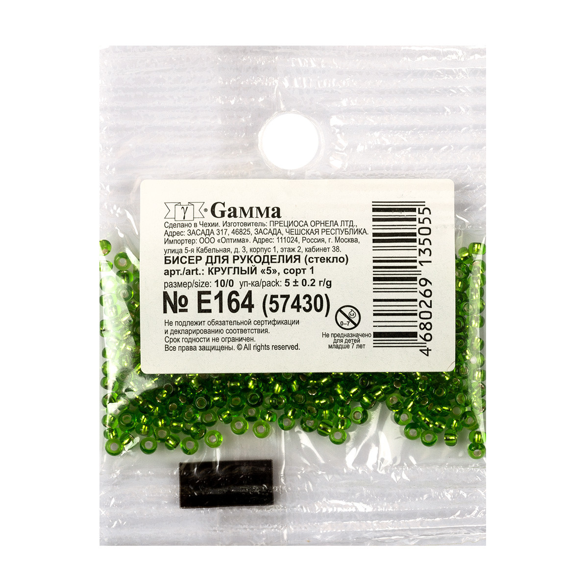 Бисер Чехия Preciosa круглый, фасовка 5 грамм. Первый сорт бисера. Фасовка Gamma