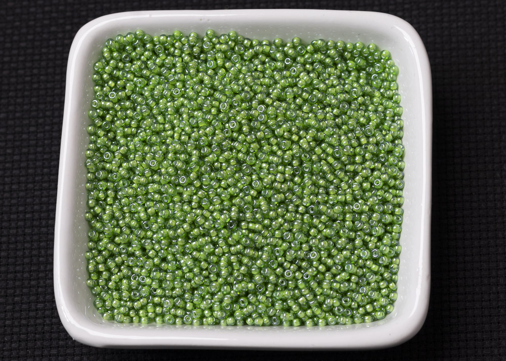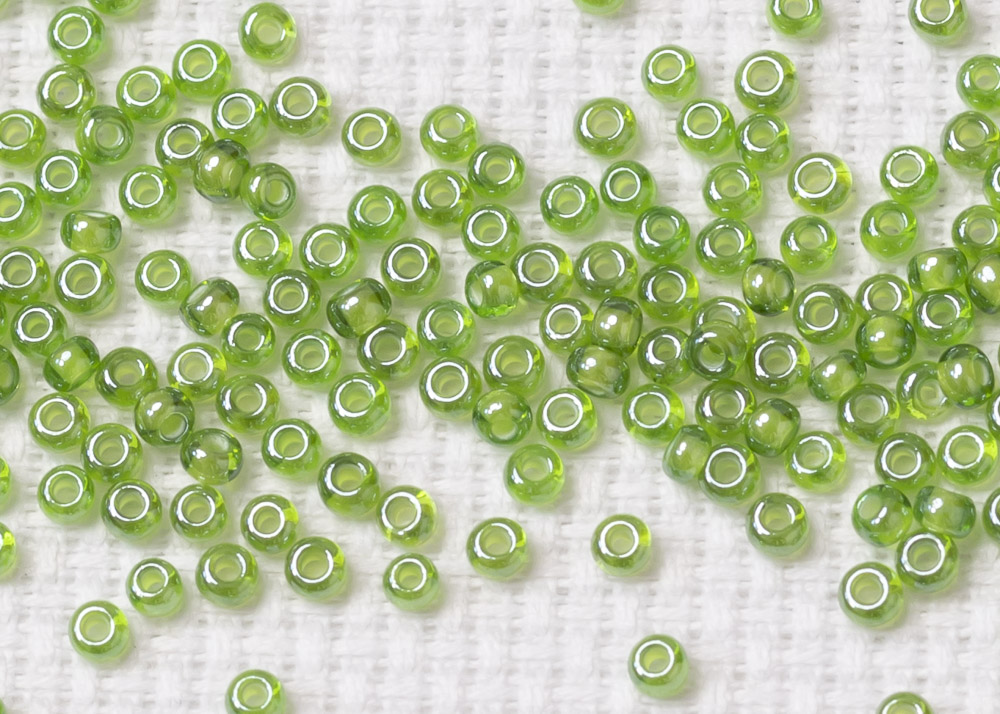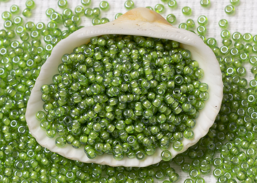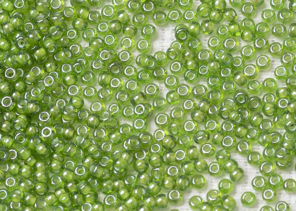 Бисер Чехия круглый 10/0 50г 55437 зеленый прозрачный, белая линия внутри