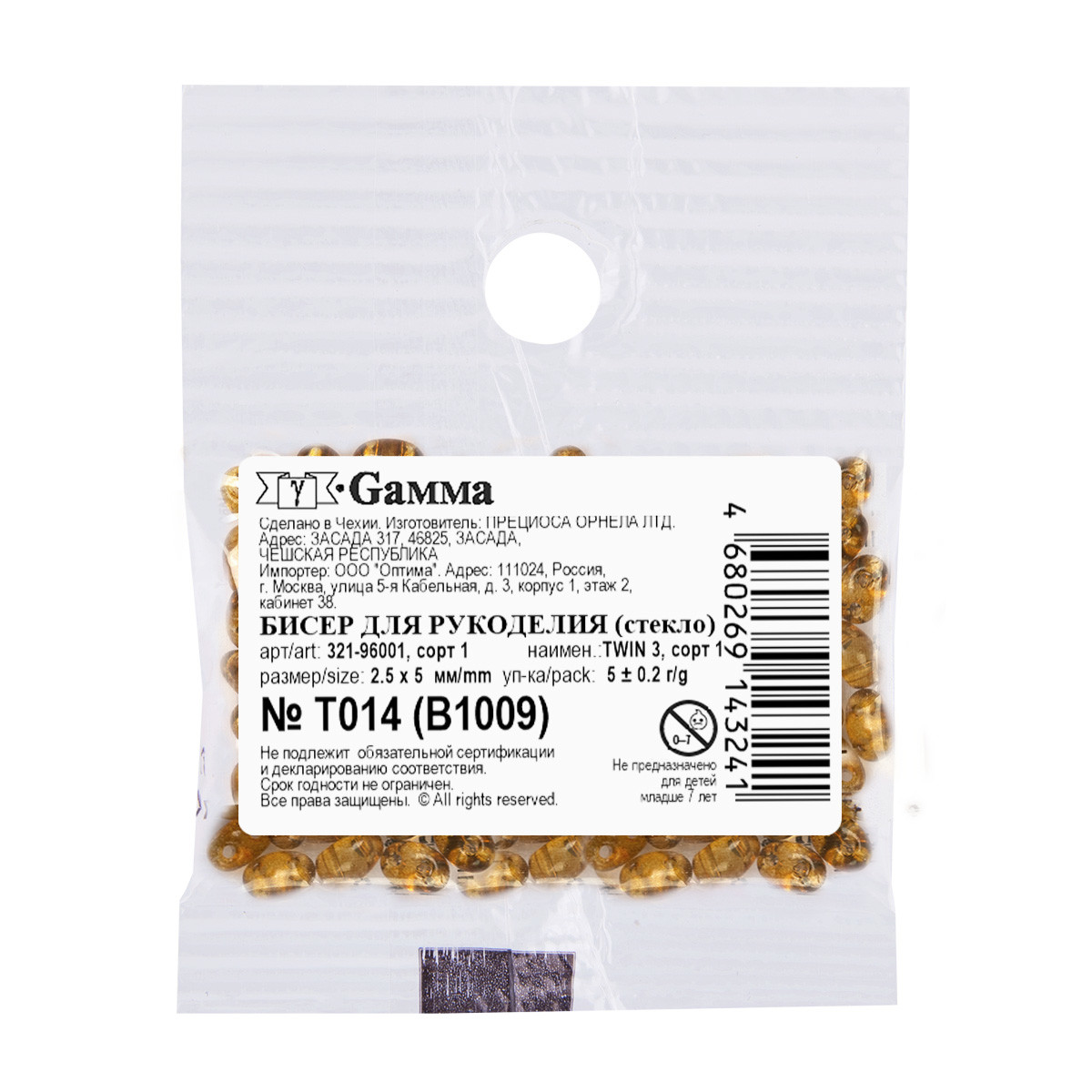 Бисер Чехия " GAMMA" TWIN 3 321- 96001 2. 5 x 5 мм 5 г 1- й сорт T023 салатовый ( B5023 )