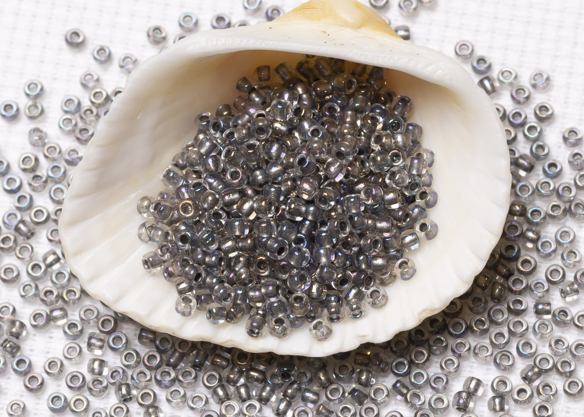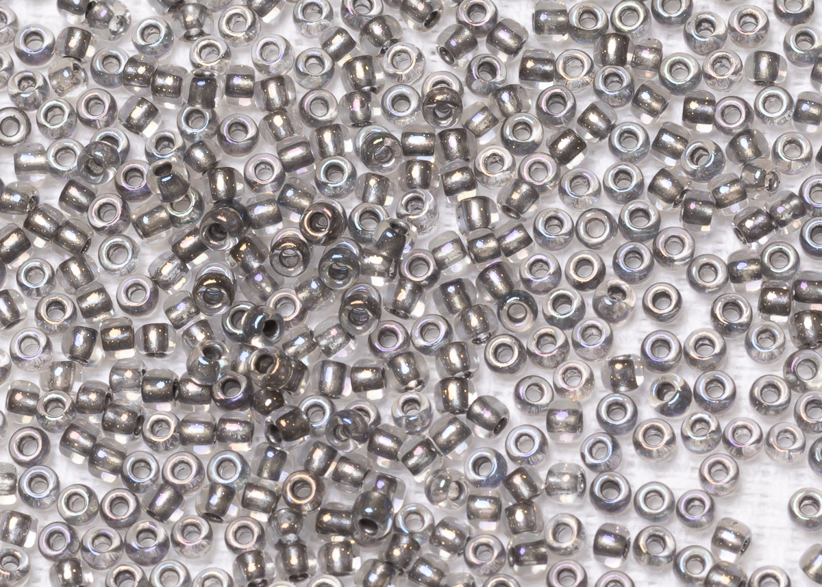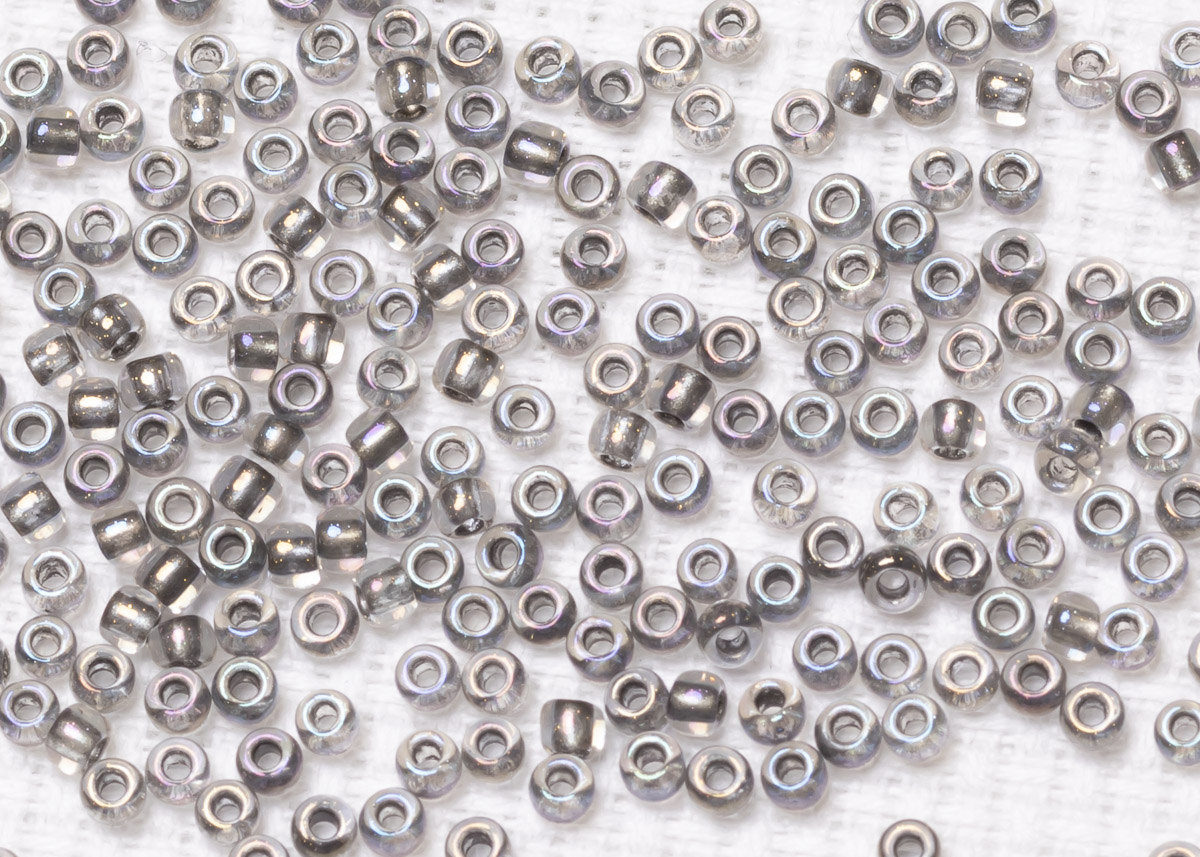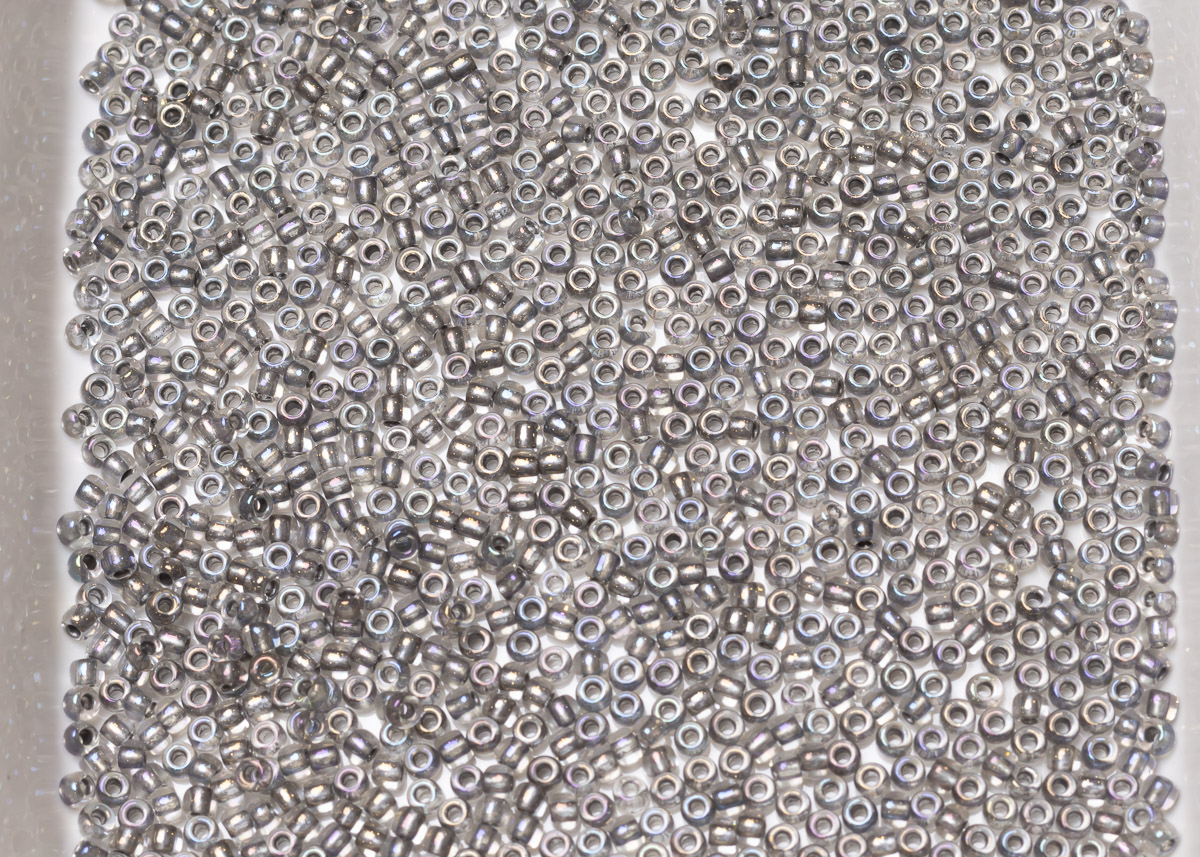 Бисер Япония круглый 11/0 10г 0266 хрусталь/серый золотое сияние, окрашенный изнутри